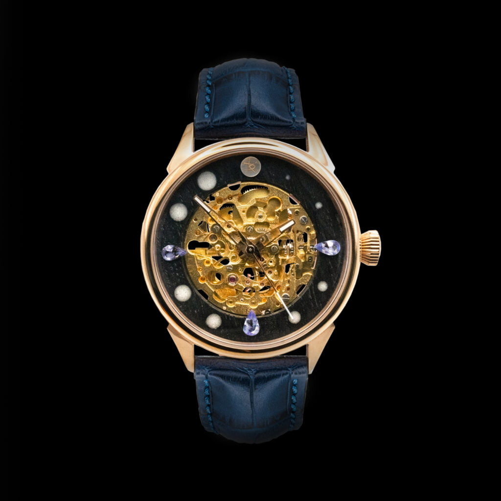Mám na výběr z několika variant. Zákazník si může navolit strojek, ručky, materiál kroužků, které používám (jsou dva), možnost indexů, drahých kamenů, řemínku a velikost pouzdra. Jen jedny hodinky, co vyrobím budou na světě a můžou vypadat přesně tak, jak si zákazník vysní.