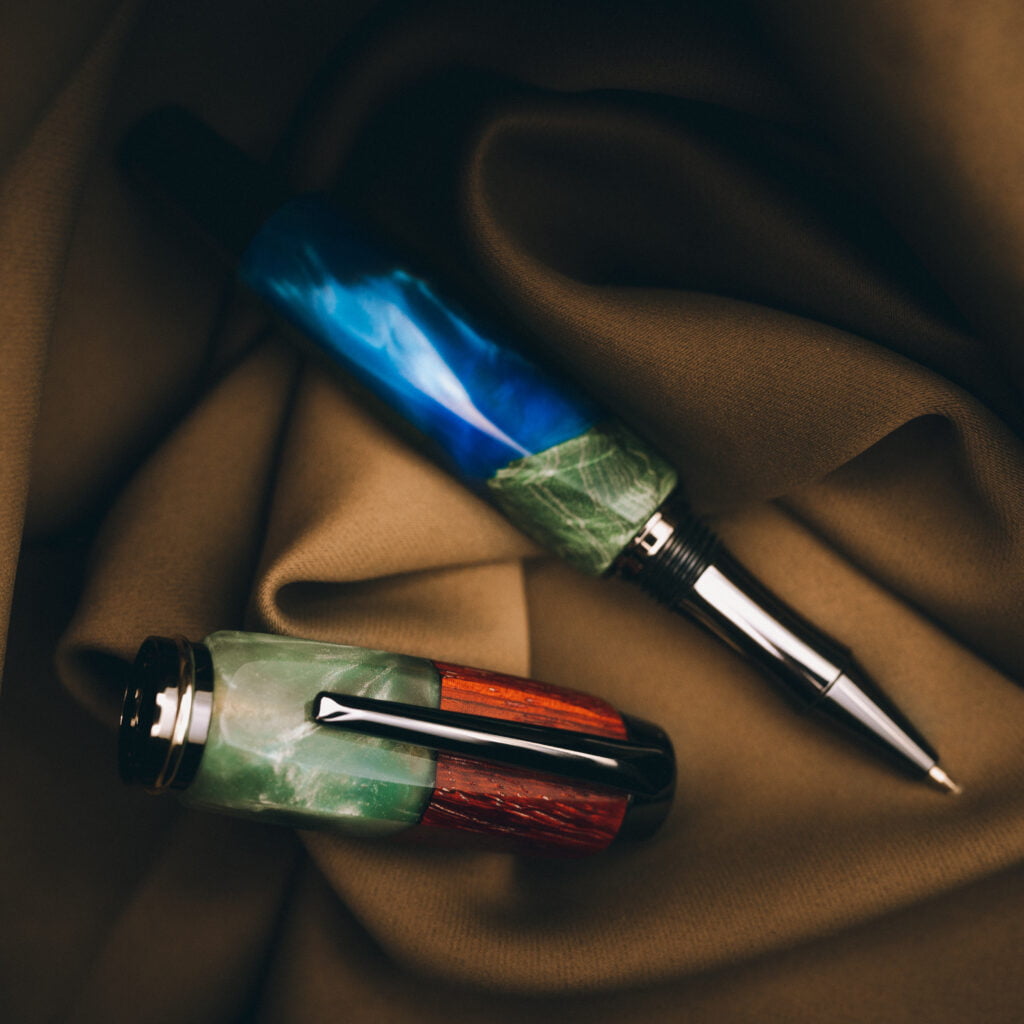 Mým cílem je vyrobit pro vás psací pera, která budou na světě jediná a jedinečná – a přesně podle vašich představ. Ať už chcete do pera zakomponovat drahé kameny, stabilizované dřevo, pryskyřici nebo něco dalšího, semnou je to možné.