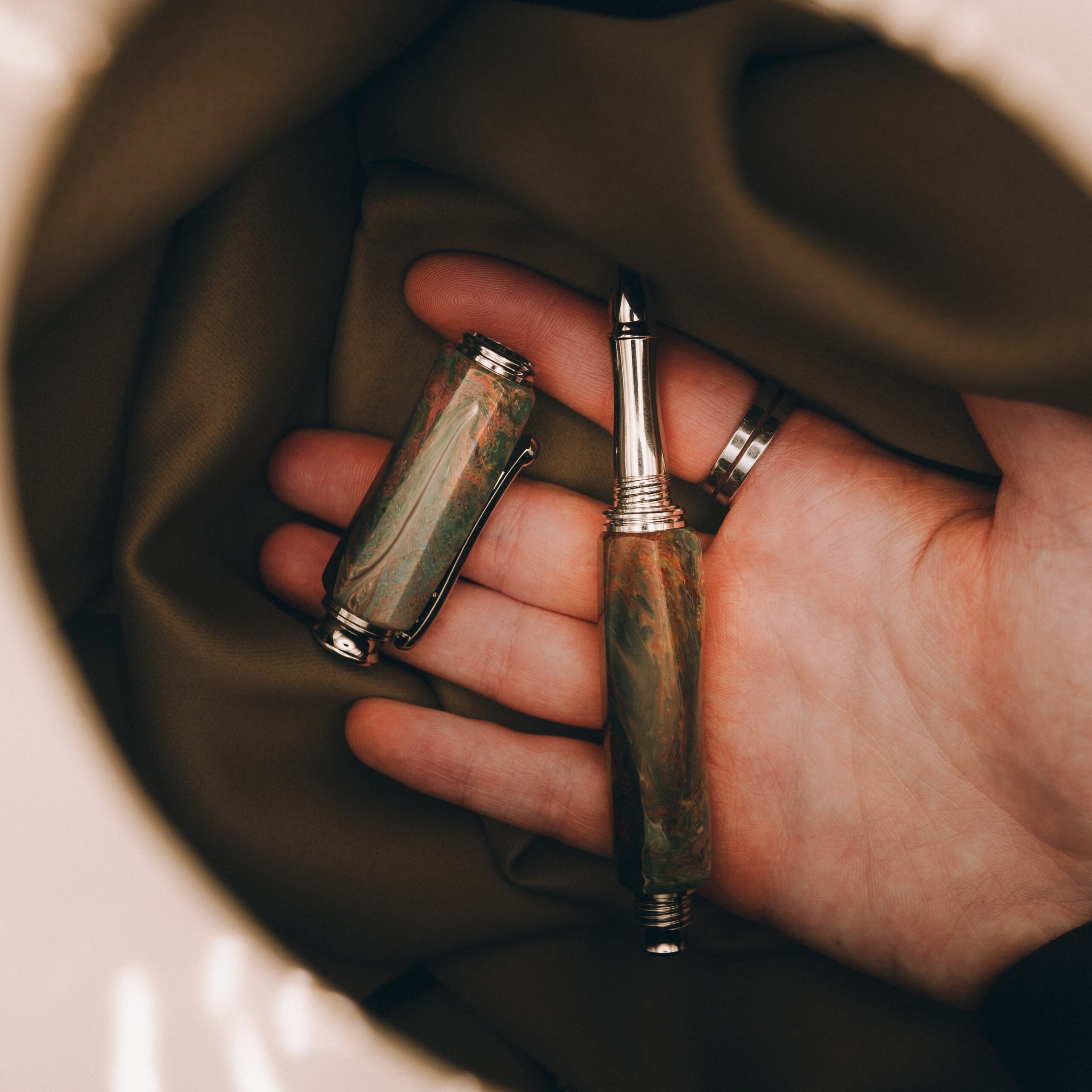 Můžete si vybrat z nekonečného množství barevných provedení a designů. Pero si můžete navrhnout tak, aby se hodilo k vašemu stylu, pro zvláštní příležitost nebo jako oslavu životního příběhu. Nabízím také možnost laserování textu, obrázků nebo symbolů, které pro vás něco znamenají.